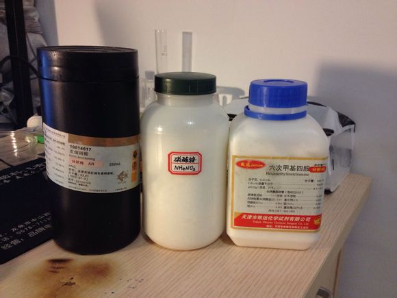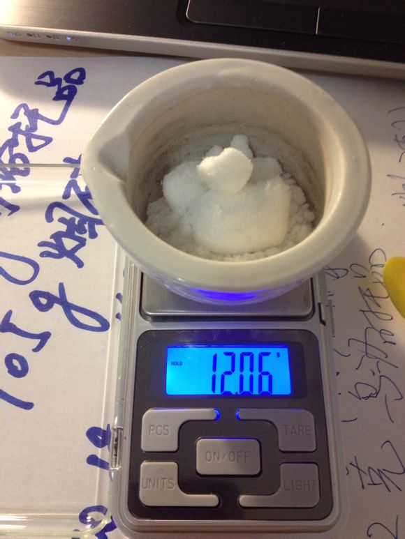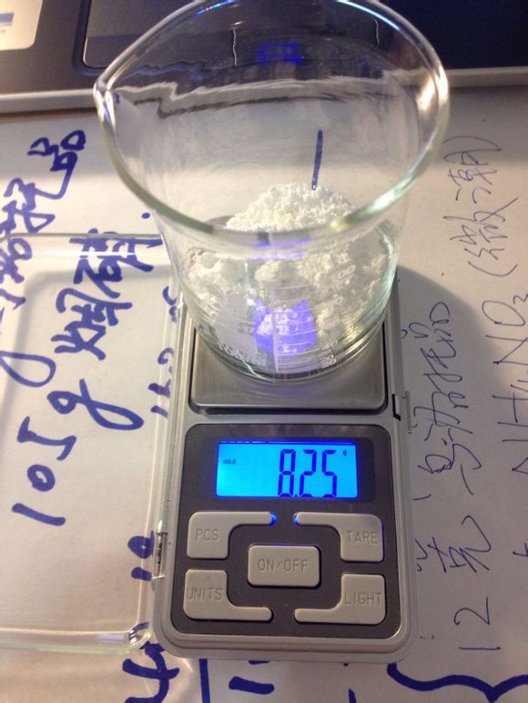 四、称取12.06克乌洛托品,碾碎,缓慢加入硝酸铵的硝酸溶液中,保持反应液温度不超过25℃。
