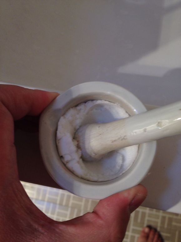 八、将产物转移到烧杯中,再将烧杯置于热水浴中以干燥产物。干燥过程中要经常用药匙翻炒。